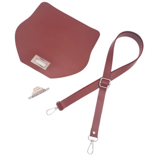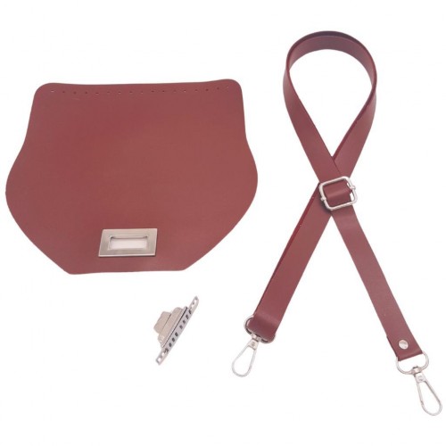 Çanta Aksesuar Suni Deri 21x19 cm Kapaklı ve Ayarlı Saplı Çanta Seti Bordo Renk Gümüş Metalli