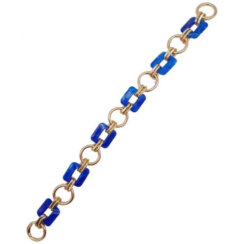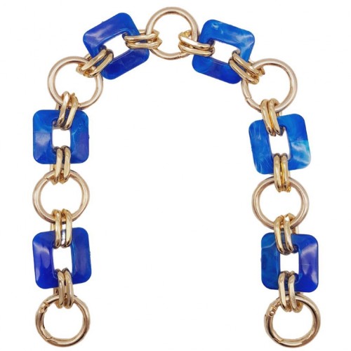 Çanta Aksesuar 40 cm Kare Akrilik Yaylı Halkalı Çanta Zinciri Mavi Renk Light Gold Metalli