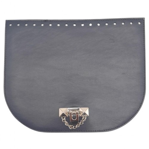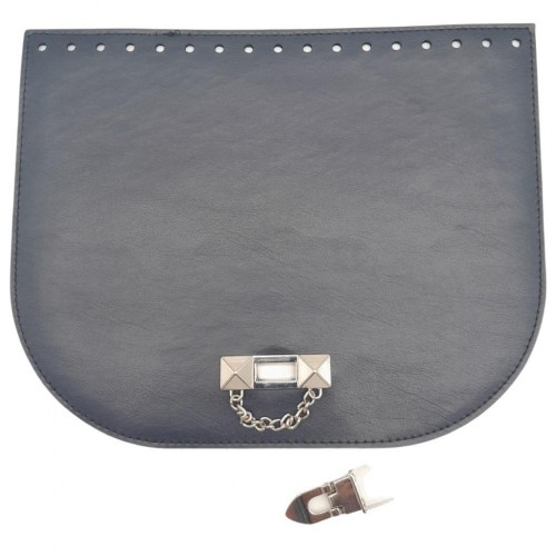 Çanta Aksesuar 24x19 cm Suni Deri Lacivert Renk Zincirli Kilitli Kapak Gümüş Metalli