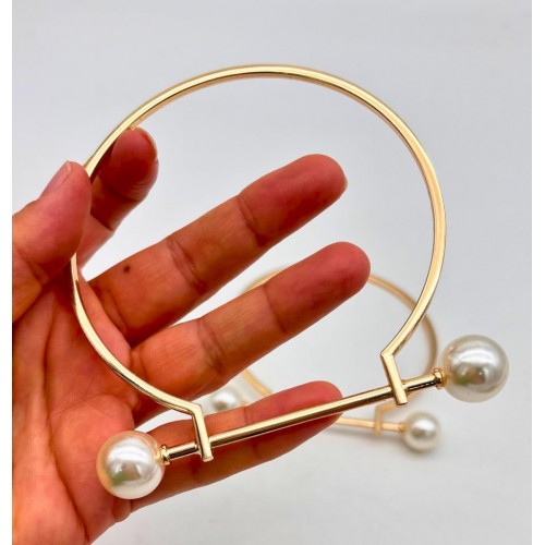 Çanta Aksesuar 9 cm İncili Light Gold Renk İncili Metal Çanta Sapı