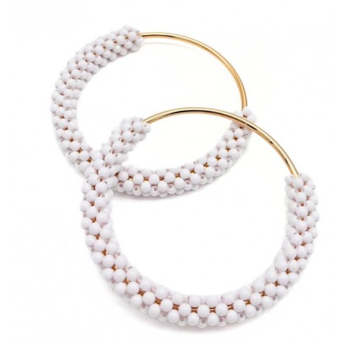 Çanta Aksesuar Yuvarlak Beyaz Boncuklu Light Gold Renk Metal Çanta Sapı