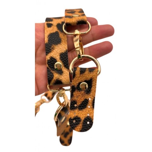 Çanta Aksesuar Suni Deri 55 Cm Misu Model Çift Sap Leopar Renk Light Gold Metal