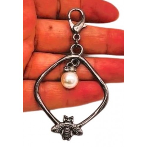Çanta Aksesuar Füme Renk Çanta Süsü (Kare  Arılı İncili)