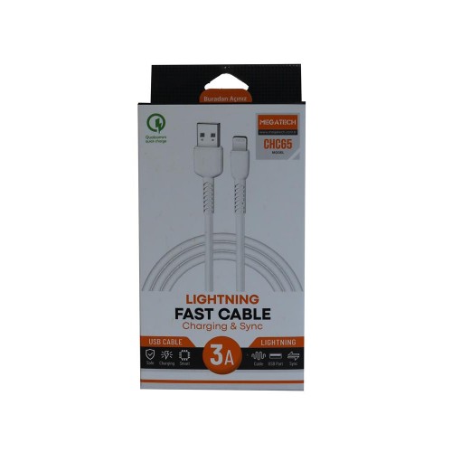 Megatech CHC65 3.0A 1mt Lightning Beyaz Şarj Kablosu