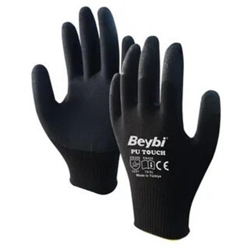Beybi 10 Beden 12li Paket Poliüretan Kaplı Pu Touch Siyah Montaj Eldiven EN388 (3121X)