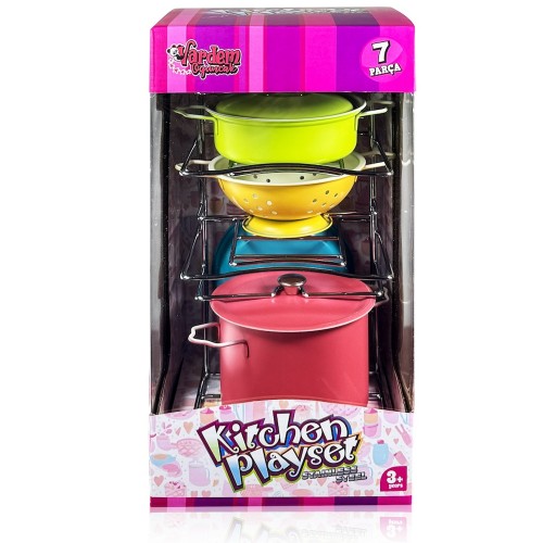 Vardem Oyuncak 7 Parça Raflı Renkli Emaye Tencere Tava Seti VRD-ATF-683G-5