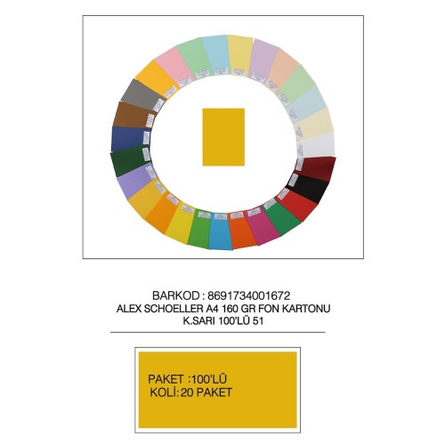 Alex Schoeller Fon Kartonu A4 No:51 K.Sarı 100 Lü
