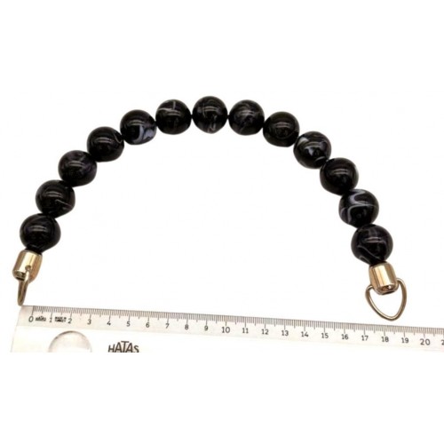 Çanta Aksesuar 20 Cm 22 Mm Boncuklu Çanta Sapı Gümüş Metalli Siyah Tonlu