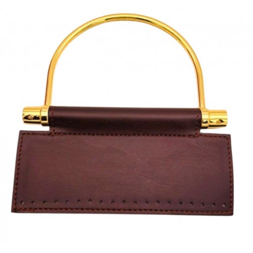 Çanta Aksesuar Suni Derili Metal Çanta Sapı İpek Model Koyu Kahve Renk Light Gold Metal (Yeni Model)