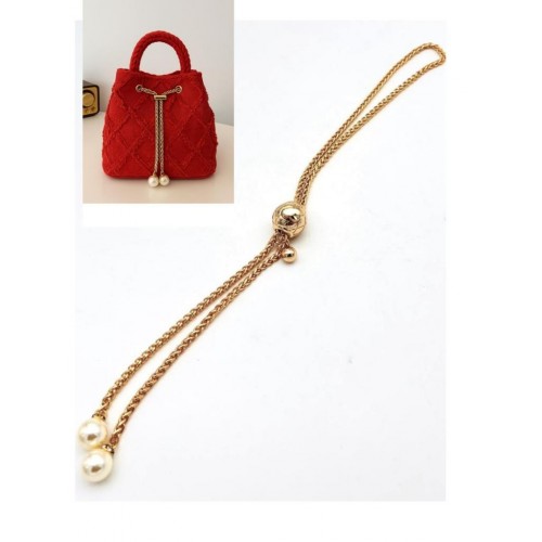 Çanta Aksesuar İncili Zincir Çanta Büzgüsü Light Gold Renk Yuvarlak Model