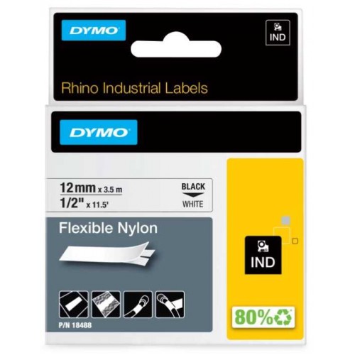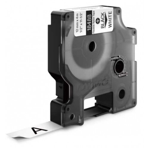 Dymo Rhinopro Esnek Naylon Şerit 12mmx3.5m Beyaz/Siyah 18488