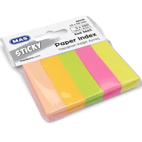 Mas Yapışkanlı Not Kağıdı Ayraç 15x50 Neon 100 Syf 5 Renk 3665 (1 Adet)