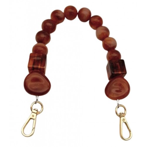 • Çanta Aksesuar 36 cm Koyu Tarçın Boncuklu Çanta Sapı Yaylı Halkalı