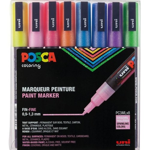 Uni-Ball Posca 0.9-1.3 Su Bazlı Poster Markörü Simli 8 Li