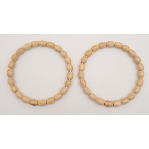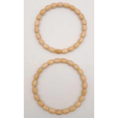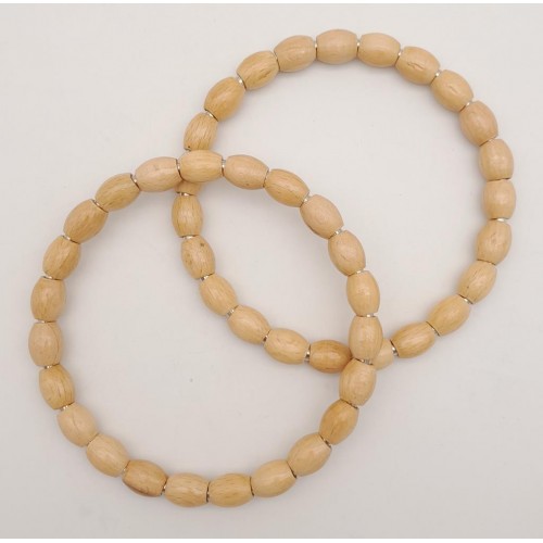 Çanta Aksesuar 12 cm Oval Ahşap Boncuklu Bilezik Model Açık Ahşap Çift Sap