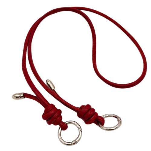 Çanta Aksesuar Suni Deri 5 mm Düğüm Model Tek Çanta Sapı 85 Cm (Kırmızı Renk Gümüş Metal)