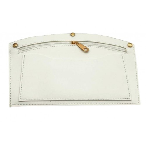 Çanta Aksesuar 24x15 cm Beyaz Renk Troklu Suni Deri Cep Light Gold Metalli