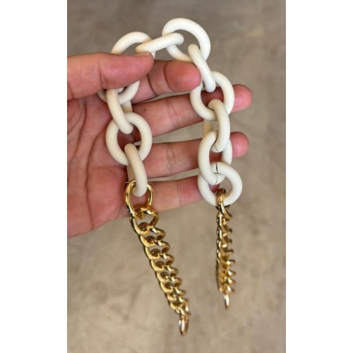 Çanta Aksesuar 54 cm Krem Mat Akrilik Zincirli Çanta Sapı Light Gold Metal