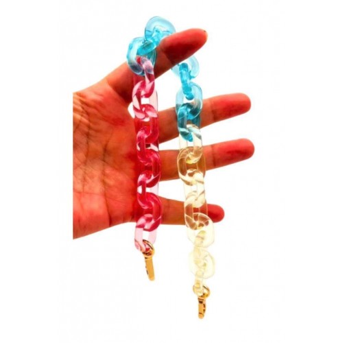 Çanta Aksesuar 38 cm 3 Renkli Akrilik Çanta Zinciri Light Gold Metalli