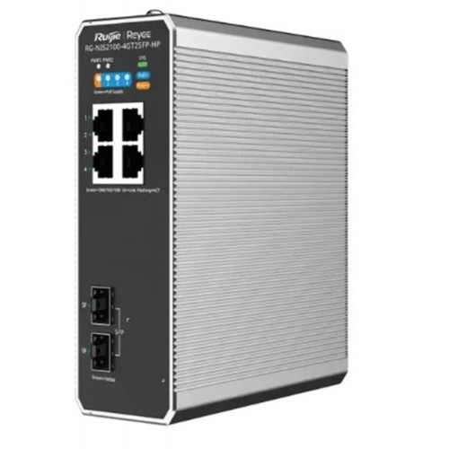 Ruijie RG-NIS21004GT2SFP-HP 4x10-100-1000 PoE+ 2xSFP Port IP40 Harici Güç Kaynağı Endüstriyel Switch