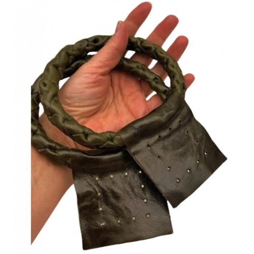 Çanta Aksesuar Gerçek Deri 13 cm Nova Yuvarlak Model Haki Yeşil Renk Çift Çanta Sapı