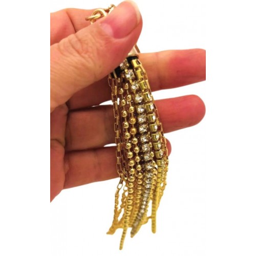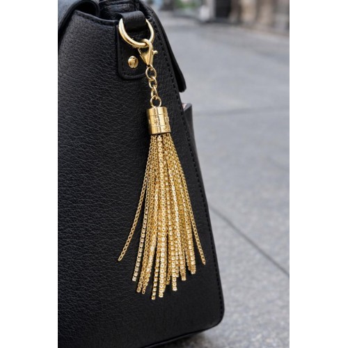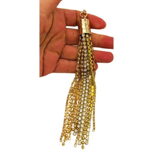 Çanta Aksesuar Taşlı Püskül Light Gold Renk