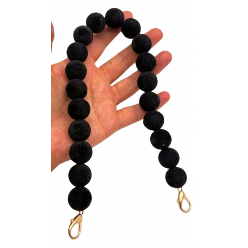 Çanta Aksesuar 40 Cm Kadife Siyah Renk Çanta Sapı Kancalı Light Gold Metalli