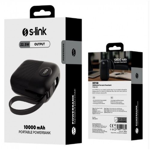 S-link MP110 10000mAh PD22.5W Type-C+Lightning Kablolu Siyah Pil Şarj Cihazı Powerbank