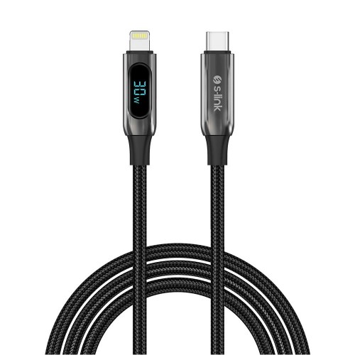 S-link Armor LED CL-030 30W 1mt Type-C to Lightning PD Örgülü LED Başlıklı Siyah Hızlı Şarj Kablosu