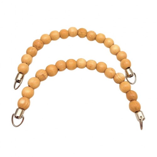 Çanta Aksesuar 21 Cm Açık Renk Ahşap Boncuklu Çift Çanta Sapı (Gümüş Metalli)