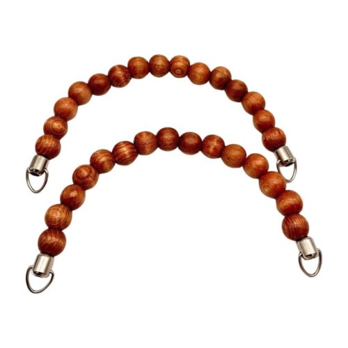 Çanta Aksesuar 21 Cm Taba Renk Ahşap Boncuklu Çift Çanta Sapı (Gümüş Metalli)