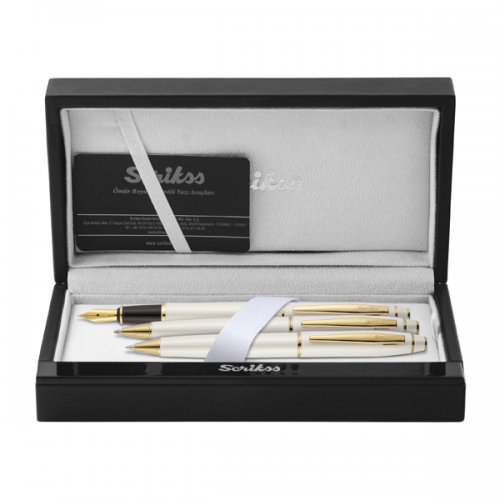 Scrikss Takım Kalem Dolma+Tükenmez+Versatil Beyaz Altın 35