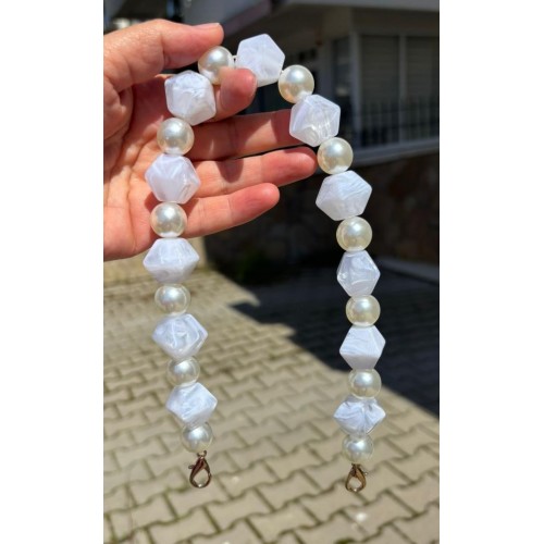 Çanta Aksesuar 40 cm Beyaz Renk İncili Çanta Sapı Kancalı