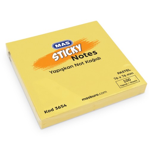 Mas Yapışkanlı Not Kağıdı 100 Syf 76x76 Pastel Sarı 3654 (1 Adet)
