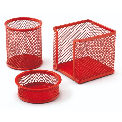 Mas Masa Seti Ataşlık-Kağıtlık-Kalemlik 3 LÜ Metal Perforeli Kırmızı 505