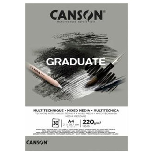 Canson Çizim Bloğu Graduate Mıx Medıa Gri 30 Syf A4 220 GR