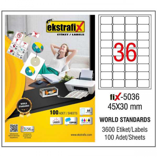 Ekstrafix Laser Etiket 100 YP 45x30 Laser-Copy-Inkjet FİX-5036