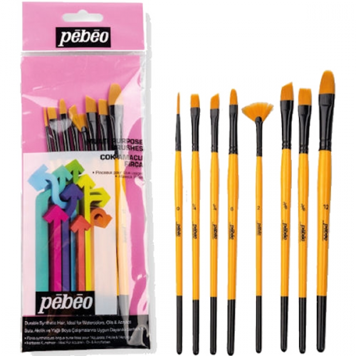 Pebeo Fırça Seti Yelpaze-Kesik Uç-Sulu Boya-Çizgi 8 Lİ SET-4