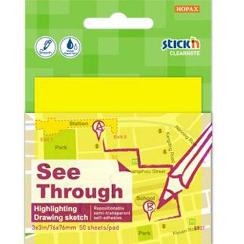 Hopax Stıckn Yapışkanlı Not Kağıdı Yarı Saydam 50 YP 76x76 Neon Sarı 21709 (1 Adet)