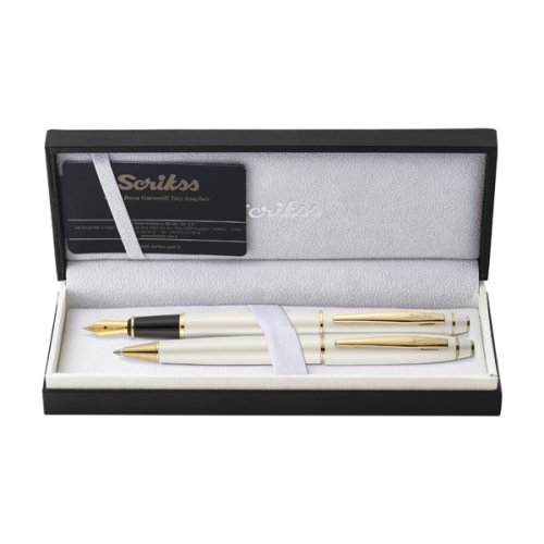 Scrikss Takım Kalem Dolma+Tükenmez Beyaz Altın 35