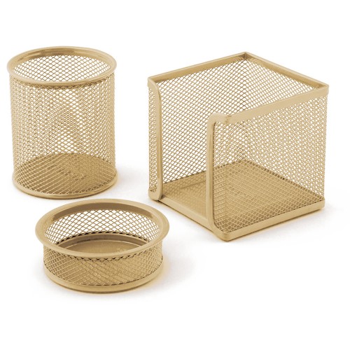 Mas Masa Seti Ataşlık-Kağıtlık-Kalemlik 3 LÜ Metal Perforeli Gold 505