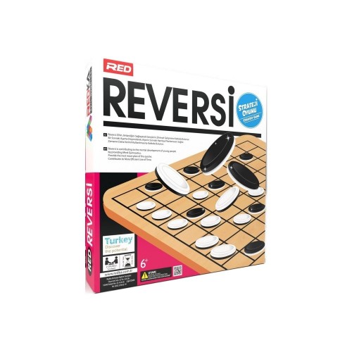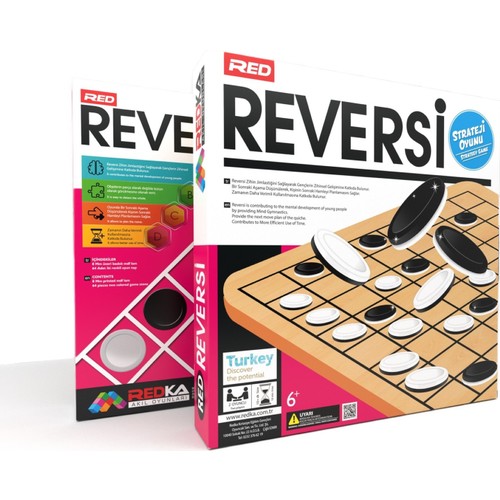 2 kişilik strateji oyunu olan Reversi, 8x8 kare ahşap oyun zemininde oynanıyor. Toplam 64 adet siyah beyaz plastik taşlar ile oynanan oyun, çocuklar başta olmak üzere yetişkinler tarafından da oldukça seviliyor. 6 yaş üzeri çocukların zeka gelişimine olumlu etkileri ile bilinen Redka Reversi strateji oyunu, eğitim bilimciler tarafından da tavsiye ediliyor. Basit kuralları ile kolay öğrenilen strateji oyunu, oyunculara eğlenceli vakit geçirtirken düşünmeye de sevk ediyor. Ürün Faydaları Ek Özellikler Marka Hakkında Redka Akıl Oyunları markası, eğitici ve öğretici oyunlar alanında Türkiye’de faaliyet gösteren yerli bir marka. Çocukların ve gençlerin zeka gelişimine, el becerilerine ve hayal dünyalarına fayda sağlayan oyun ve eğitici materyaller üretmektiyor. Eğlenceli Strateji Oyunu Reversi Eğlenirken düşünme, mantık yürütme ve sabretmeyi öğreten Redka Reversi strateji oyunu, iki kişi arasında oynanıyor. Oyun materyallerini, 64 kareden oluşan oyun tahtası ve 64 adet, bir tarafı beyaz bir tarafı siyah renkli taşlar oluşturuyor. Karşılıklı oynanan oyunda her oyunca oyuna 32 adet taş ile başlıyor. Başlangıçta oyun tahtasına 4 adet taş konuluyor. Ardından sırası gelen oyuncu, kendi taşlarını rakip oyuncunun taşının yanına yerleştirerek kuşatmaya başlıyor. Oyuncu, oyunu doğru hamlelerle ilerletirse, iki aynı renk arasında kalan diğer rengi kendi rengine dönüştürme hakkı kazanıyor. Her bir oyuncu, tahta üzerinde kendi rengindeki taş sayısını artırmayı hedefliyor. Oyun sonunda en çok taşı bulunan oyuncu, oyunu kazanmış oluyor. Kutu İçeriği : 32X32 cm Ebatlarında, 8 mm kalınlığında ahşap zemin.
